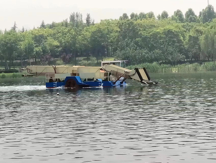 Движение веслового колеса 5 км/ч лодка для очистки поверхности реки